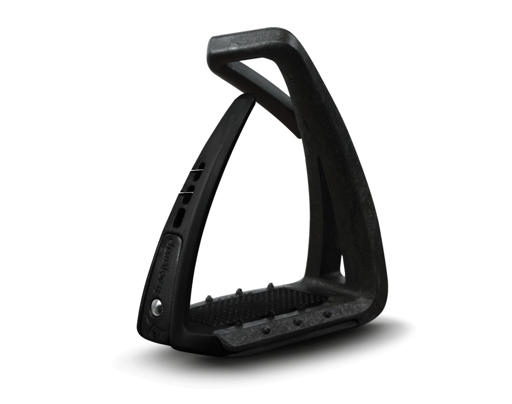 La technologie monobranche, combinée au surmoulage en Elastollan®, permet de diviser par trois les efforts reçus sur chaque étrier et de soulager les articulations du cavalier et le dos du cheval.