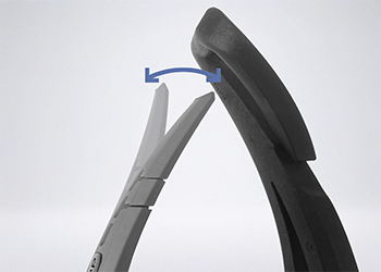 La branche externe de l'étrier est fabriquée en Elastollan®, un matériau souple qui se déforme et permet à la branche de s’ouvrir afin de faciliter le dégagement du pied en cas de chute.
