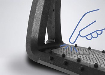 La monobranche de l’étrier SOFT’UP LITE, conçue en polyamides fibres longues, répond aux contraintes maximales que peut subir un étrier en termes de choc et de fatigue.
