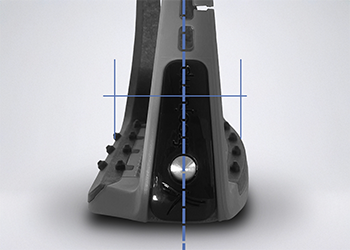 La position avancée de l’œil par rapport au plancher de l’étrier déplace le centre de gravité pour favoriser une inclinaison naturelle du pied et la descente des talons.